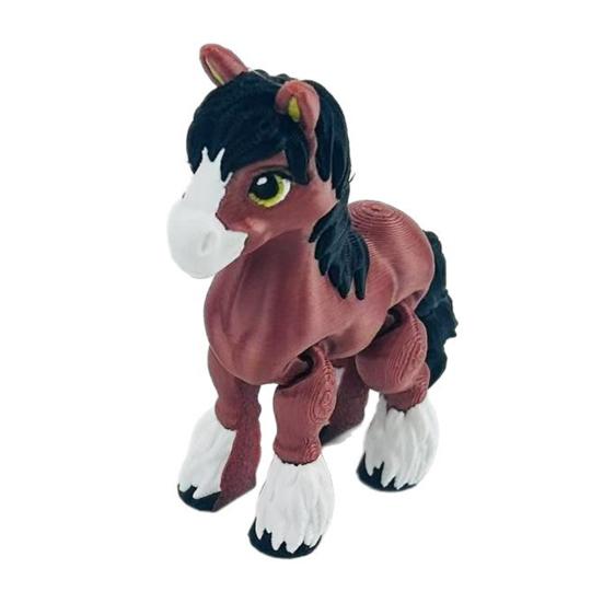 This highly detailed horse figurine features intricately carved hair grain and hoof patterns, providing a smooth, premium feel that reflects exquisite craftsmanship. Its charming design showcases a brown base color accented with black and white patterns, complemented by large round eyes that capture both the lively essence of a young horse and a playful cartoon appeal.