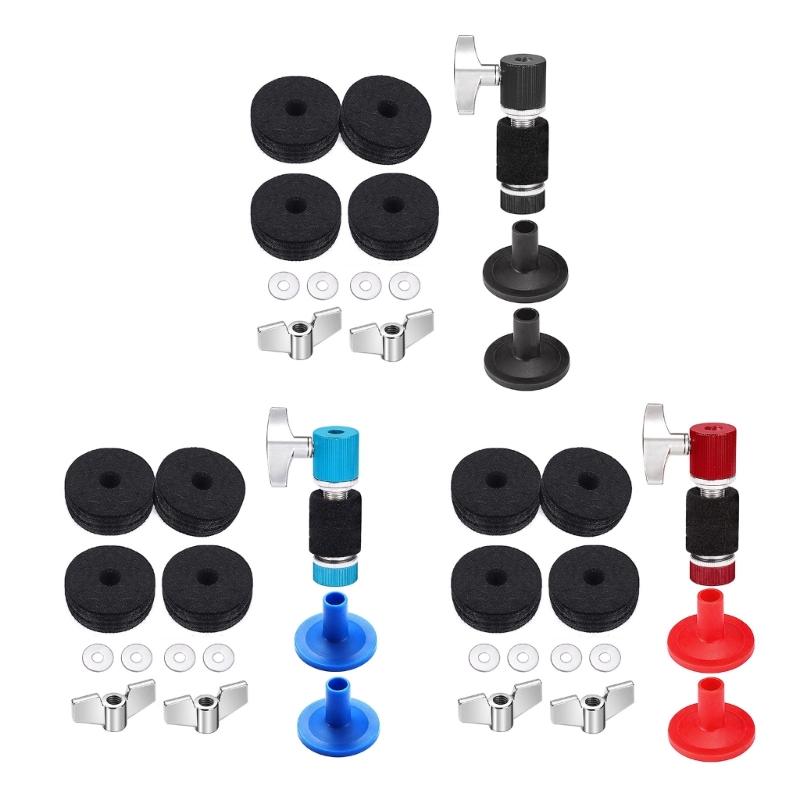 13Pcs Drum Cymbal Felt Pads Set Drum Cymbal Felt Pads and Sleeves with Wing Nuts, Washer, Drum Key Percussion Part