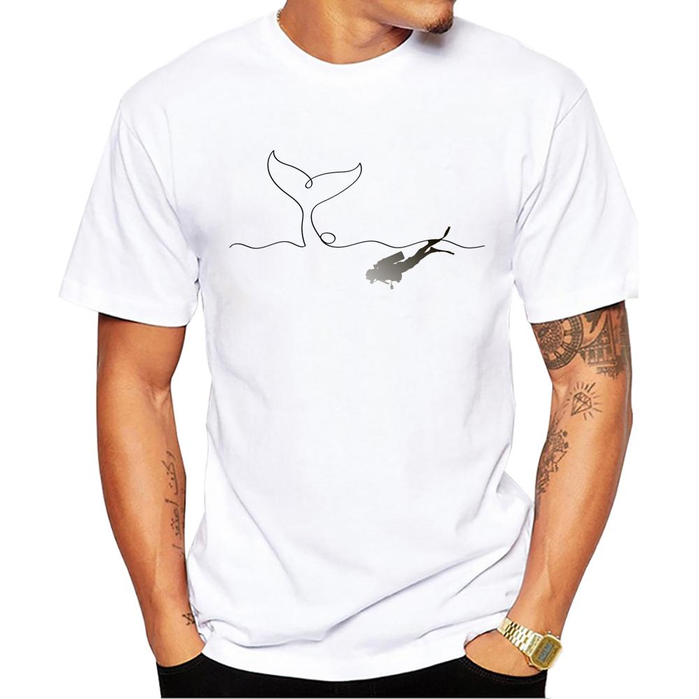 TEEHUB Simple Line Tops Diver Print Men's T-Shirt O-Neck Men Clothing Short Sleeve Male Casual Streetwear