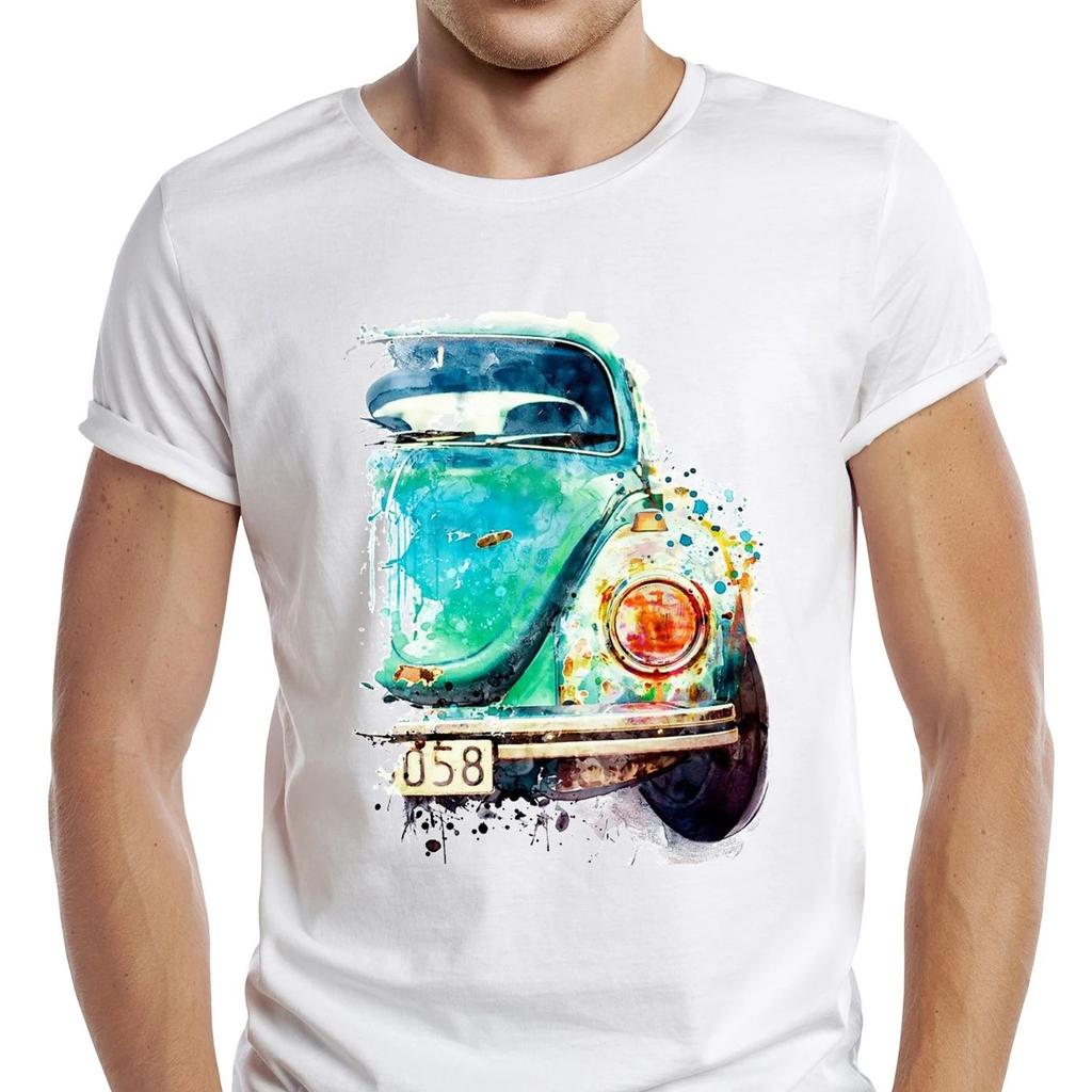 TEEHUB Vintage Car Watercolor Printed Men T Shirt Graphic Retro Drawing Sport Car Cloth Casual Tops Hipster Tee