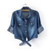 Summer Women's Denim Shorts Blue Jacket Ladies Korean Short-sleeve Loose Fit Slim O-Neck Thin Shawl Denim Caot Thin Tops