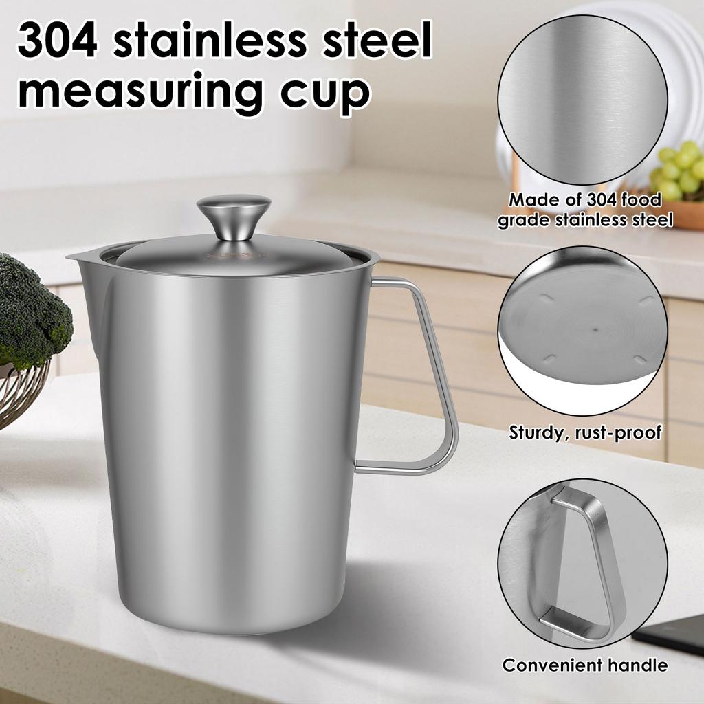 Stainless Steel Milk Coffee Graduated Measuring Cup Latte Art Measuring Cup with Lid Suitable for Home Use and Coffee Shops