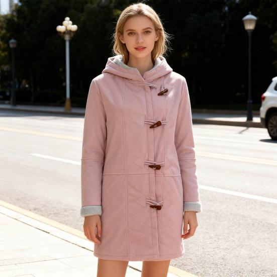 Premium Polyester Fabric: Crafted from high-quality polyester, this women's coat offers a soft and comfortable feel against the skin. The material is durable yet lightweight, providing excellent warmth without bulkiness. Its breathable nature ensures comfort during extended wear in chilly autumn and winter conditions.