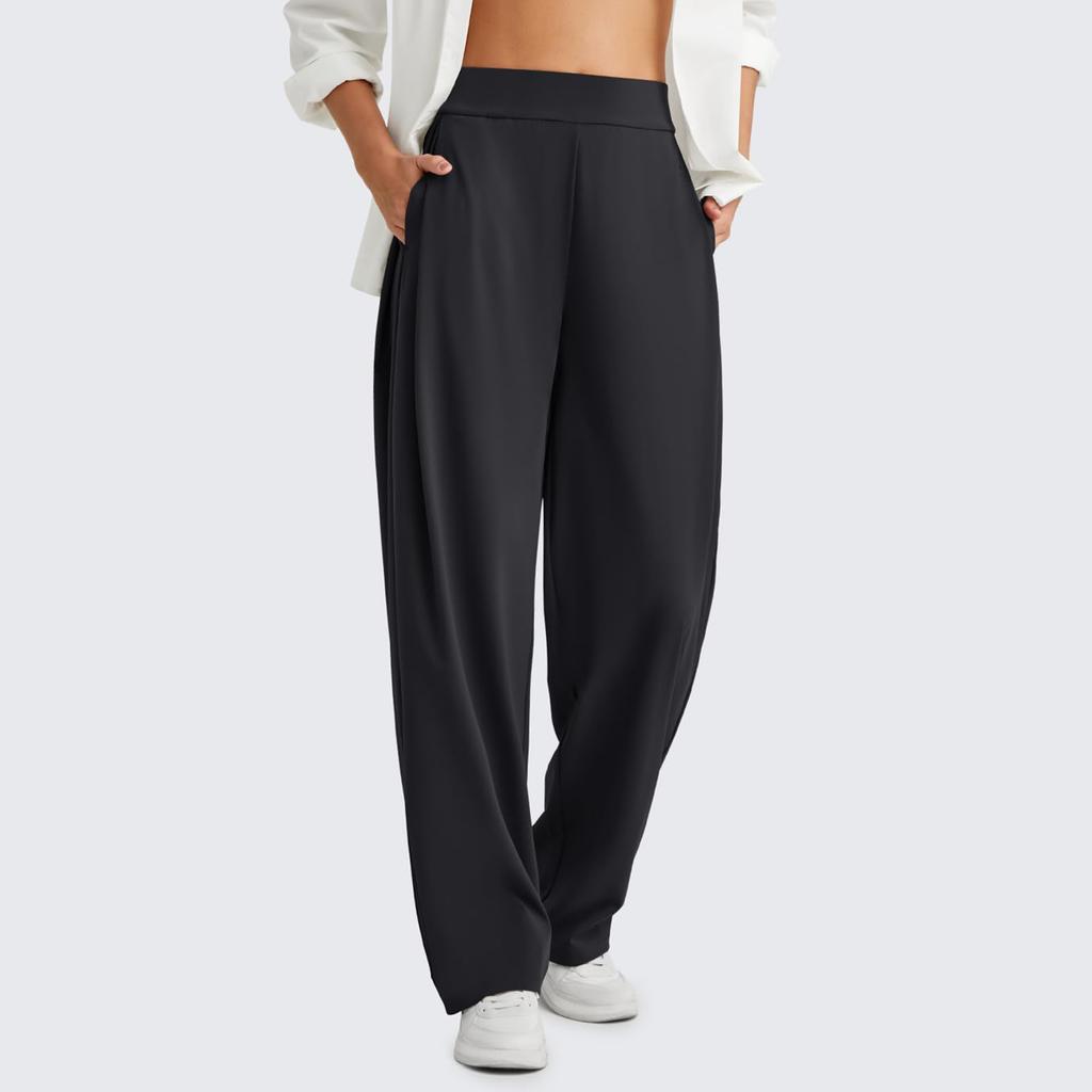 Ladies' Fashionable Solid Color Straight Leg Pants With High Waist Pockets Casual Pants