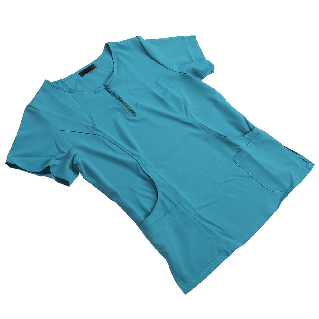 2pcs Surgical Uniform Quick Drying Elastic Short Sleeve Women Medical Surgical Uniform for Hospital Clinic Lake Blue M