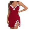 Sexy Sleepwear Women Lace Silk Satin V-Neck Nightgown Split Hem Soft Lingerie Night Dress Sleeveless Sleepwear Female Clothes