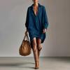 Women's Long Sleeved Casual Retro Loose V-neck Suede Like Dress