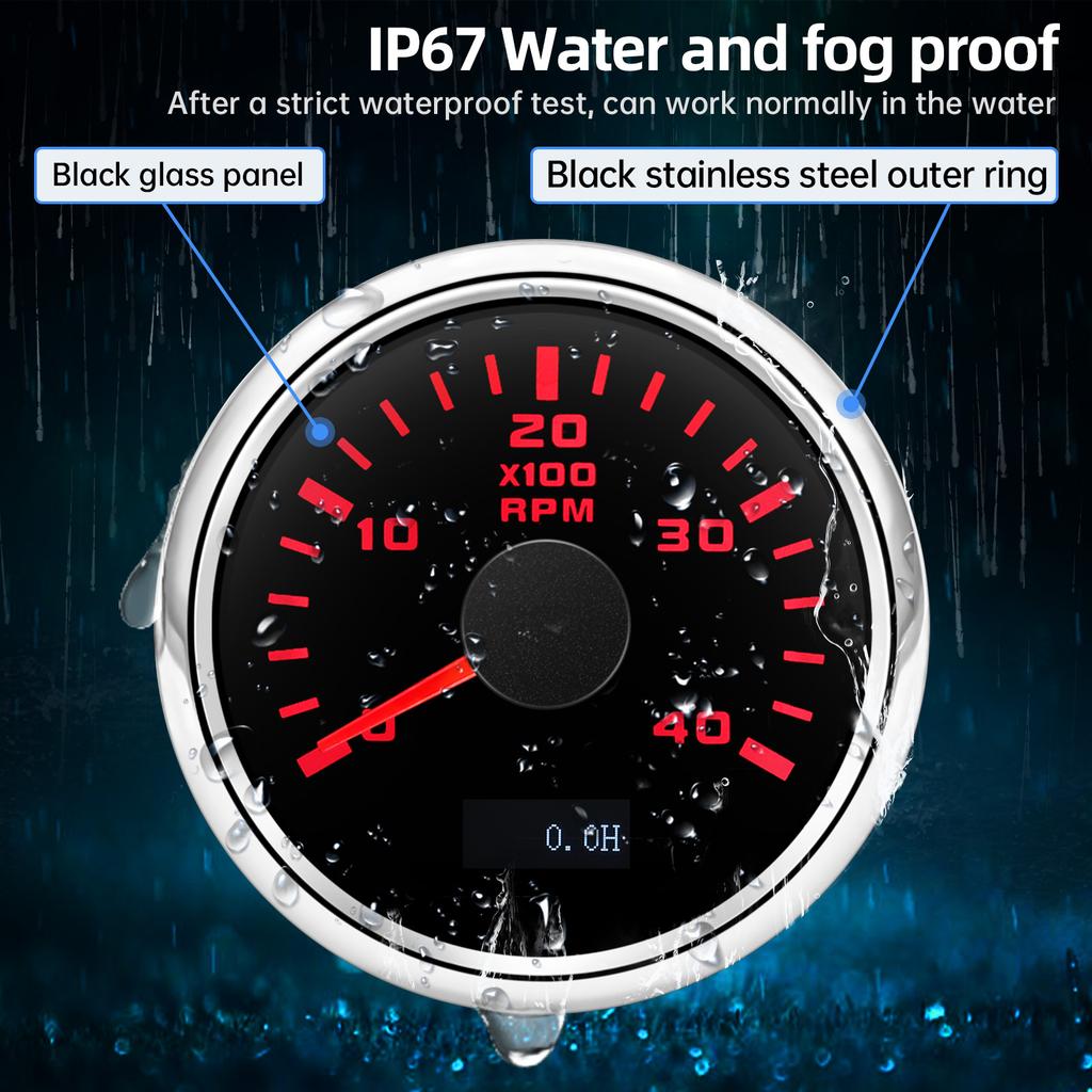 52mm Tachometer 3000/4000/6000/7000/8000 RPM Tacho Meter With Hourmeter For Marine Boat Car Tachometer Red Backlight 12V 24V