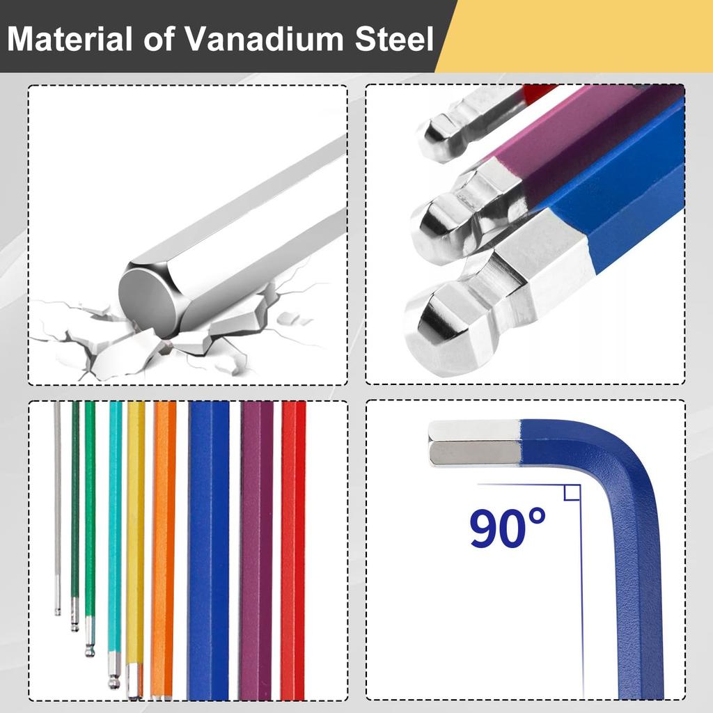 Professional 9PCS Allen Keys (1.5-10mm) L Wrench Kit Hexagon Spanner Hand Tools for Bicycle/Car/Furniture/Electronics Repair