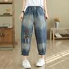 Spring and Summer Loose Literary Retro Jeans Nine-point Harem Pants Stitching Contrast Color Daddy Pants Women