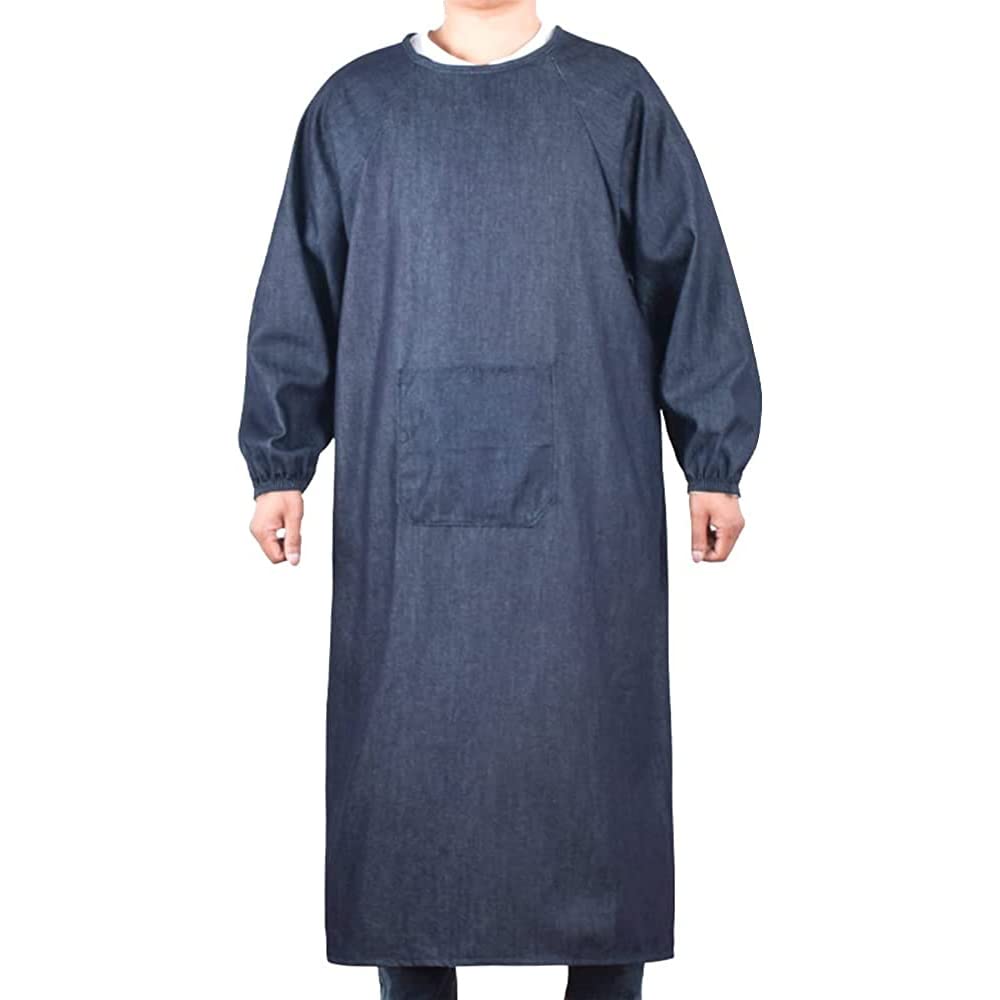 Hedbroli Long-Length Men's Apron, Work Apron, Soft Denim, Plus Sizes Available, Stylish Workwear, Samue, Father's Day Gift (Blue, 115cm Length)