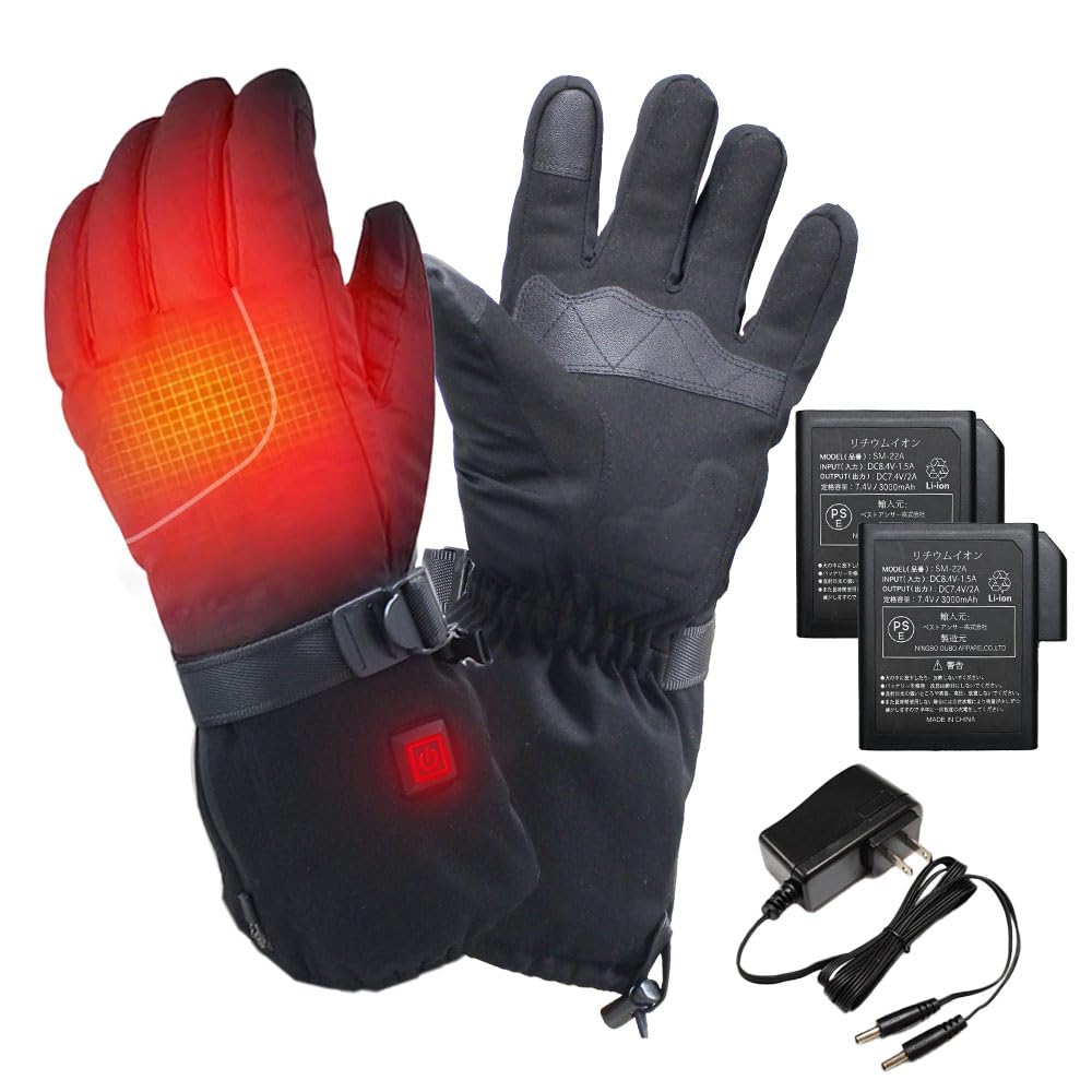 Product Description ■ [2023 Latest Improved Product] Hot Gloves Heat Gloves Warm Compatible with both rechargeable and battery powered Commuting Outdoor Activities Fishing Walking ■ Recommended Points ・Rated voltage upgraded to twice the current version (3.7V) (7.4V)! ・Included capacity increased to 6000mAh! ・Maximum heating temperature upgraded from 45 degrees to 60 degrees! *The listed heating temperature is the temperature of the heating wire built into the glove. ・3-stage temperature switching function allows you to adjust the output to suit the situation! ・Can be used for up to approximately 8.5 hours from a full charge! (When set to low temperature) ・Soft lining provides thorough heating all the way to your fingertips ・Warms up in approximately 10 seconds after turning on the quick-heat switch! ・Water-repellent surface for peace of mind ・PFOA-free (no water-repellent agents containing PFOA are used) for peace of mind and safety