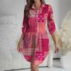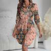 Women's Loose-fitting V-neck Long-sleeved Dress Print Work Shirt Dress