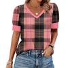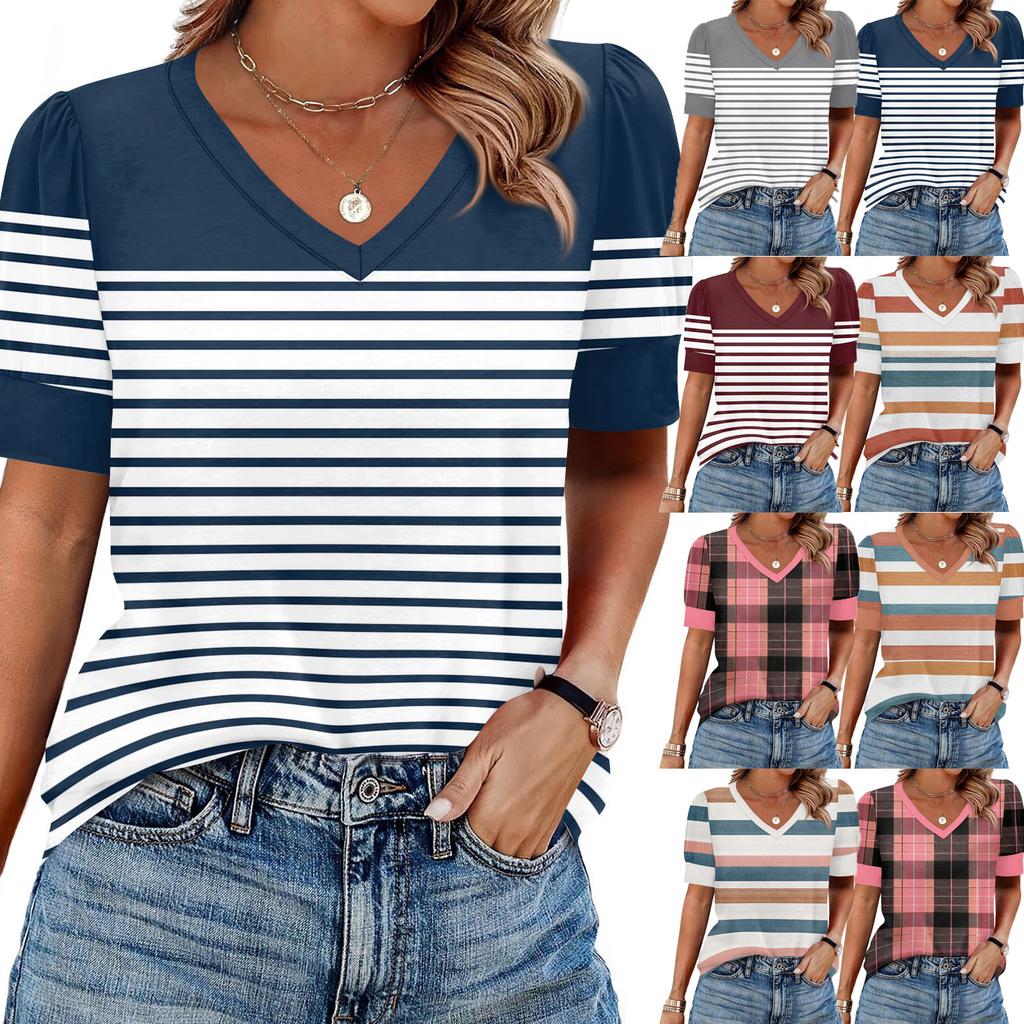 Women's Fashion Casual V- Neck Short Sleeve Print Shirt Women's Up Tops