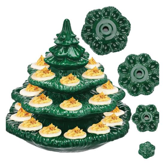 Practical 24-egg Serving Capacity: Safely holds up to 24 deviled eggs in its festive tree-shaped layout, functioning equally well as a ceramic-style platter for snacks, desserts, and holiday appetizers.