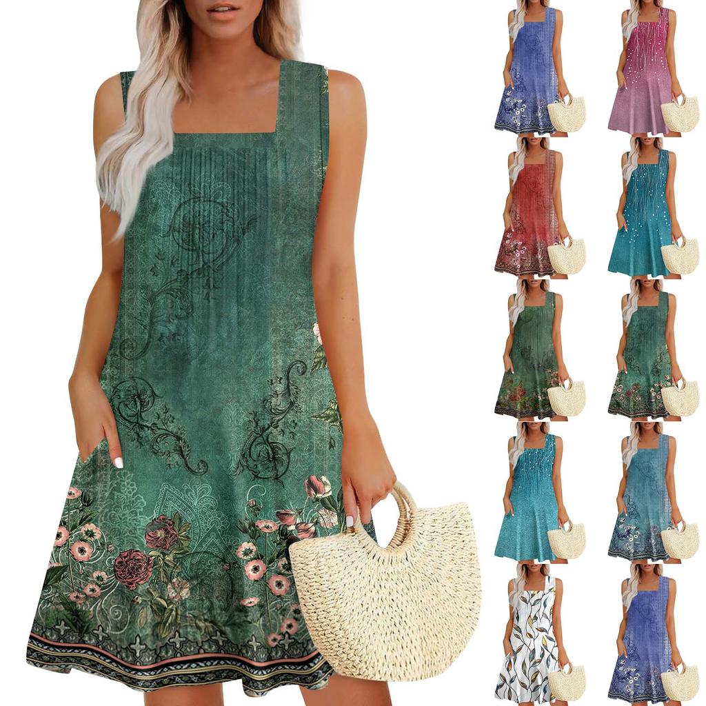 Womens Summer Dresses Loose Sleeveless Sundresses Dress With Pockets