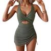 Women's Solid Colour One-piece With Bra Pads Non-steel Support Swimming Costume Sexy Bikini