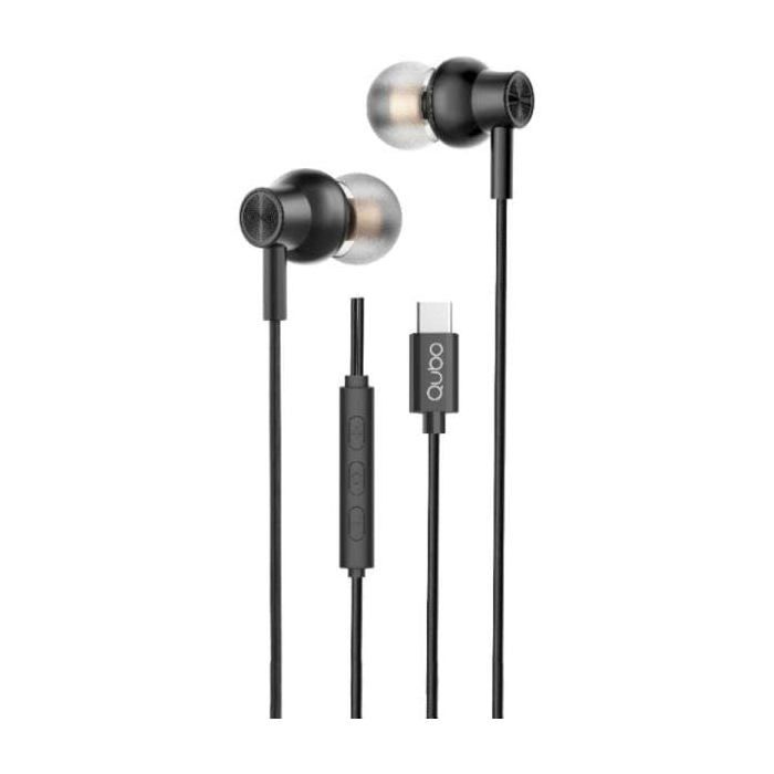 Écouteurs intra-auriculaires avec microphone - Qubo - AU-300C - USB-C - Noir - Contrôle du volume - Micro intégré
