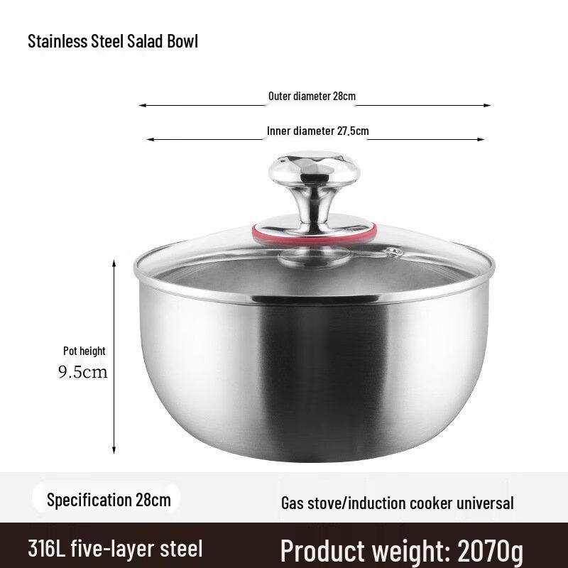 ZISIZ 28cm Stainless Steel Deep Mixing Bowl with Lid