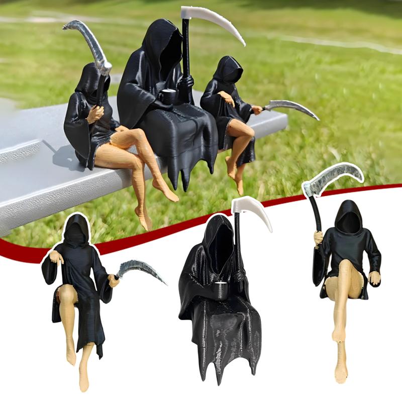 Gothic Death Sisters Figure Grim Reaper Bookshelf Sculpture 3D Printed Spooky Statues Holding Sickle Desktop Ornaments Halloween