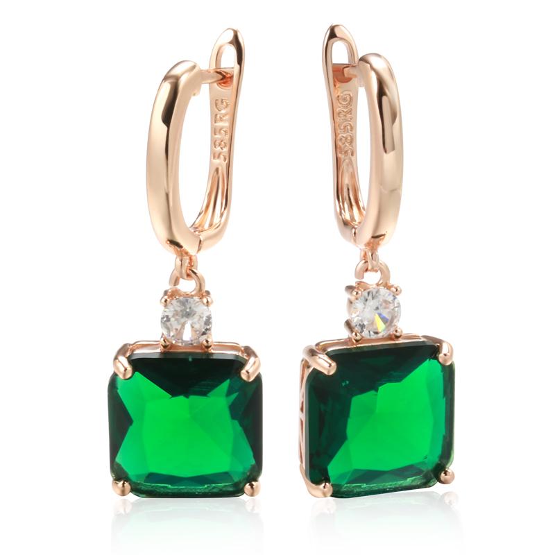 Square Green Stone Long Dangle Earrings For Women Rose Gold Color With Natural Zircon Accessories Daily Jewelry