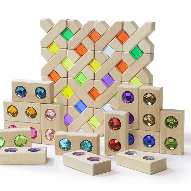 Acrylic Crystal Gemstone Building Block Rainbow Square High Transmittance Cube Children's Educational Sensory Kindergarten Toy