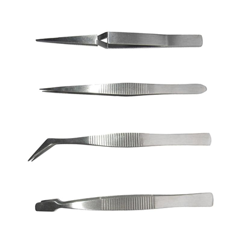 4-Piece Tweezers Set Stainless Steel Self Locking Hobby Tweezers for Craft/Jewellery/STAMPS/Model Making Professional