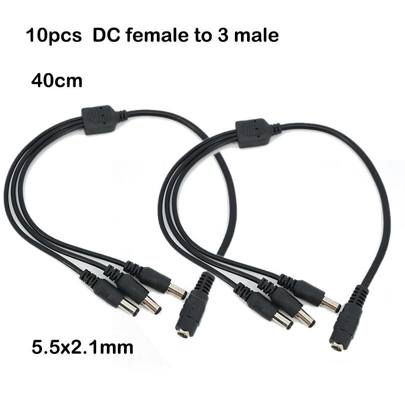 10pcs DC Splitter Power Adapter Connector 1 Female To 3 Male Way 40cm Jack Plug Cable 12V 5.5mm*2.1mm For CCTV Camera LED Strip