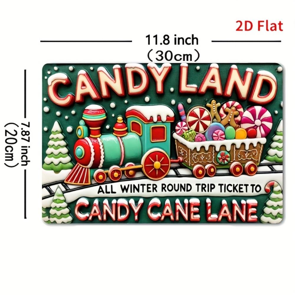 Vintage Candyland Metal Wall Art - Winter Candy Cane Lane Ticket Decor with Colorful Train & Gingerbread, 7.87x11.81 Inch Outdoo