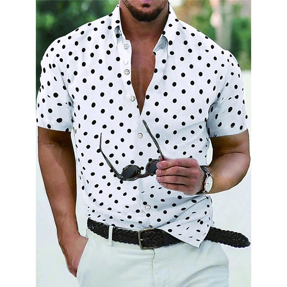 Men's Shirt Button Down Shirt Casual Shirt Summer Shirt Beach Shirt Black White Red White Green Short Sleeve Polka Dot Lapel