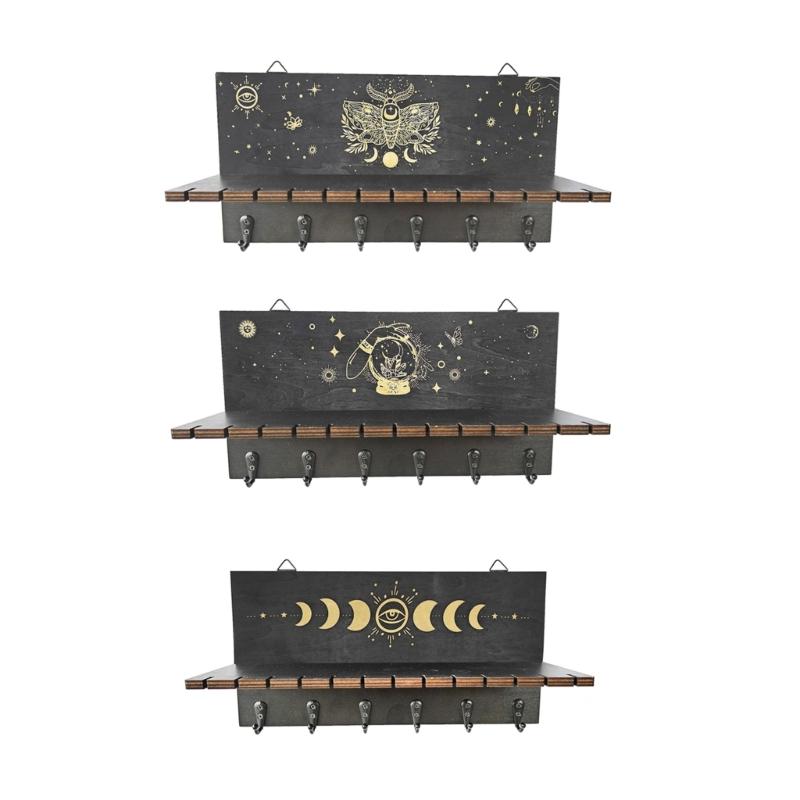 Wooden Crystal Display Shelf Wall Mounted Candle Holder Healing Stone and Pendants Showcase Stand Table Decorations