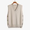 Autumn New Women's Clothing V-neck All Match Elegant Sweater Vest Buttoned Shoulder College Style Loose Vintage