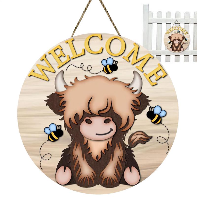 Highland Cow Bedroom Decor Highland Cow Wooden Sign Seasonal 11.8Inch Rustic Wood Door Sign For Porch Holiday Decoration
