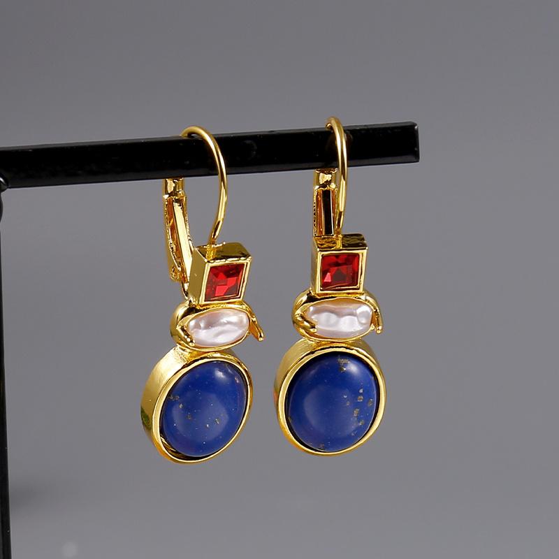 Vintage Lapis Lazuli Dangle Earrings for Women Gold Plated Garnet Square Drop Earrings with Baroque Pearl Hypoallergenic Lightwe