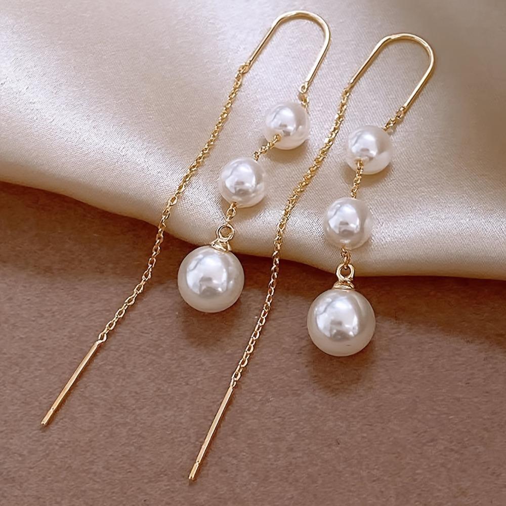 Chic Dazzling Faux Pearl Earrings - Light Luxury Threader Design for Daily Glam & Special Occasions - Adjustable