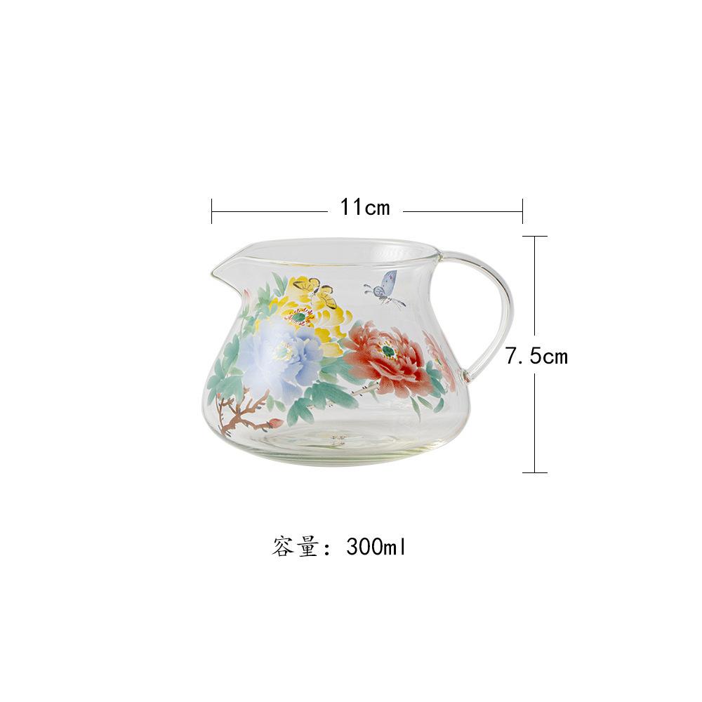 300ml Fragrant Peony Glass Tea Pitcher Tea Divider Serving Cup Cha Hai Dispenser Justice Cup Fair Mug Cafes Decoration Supplies