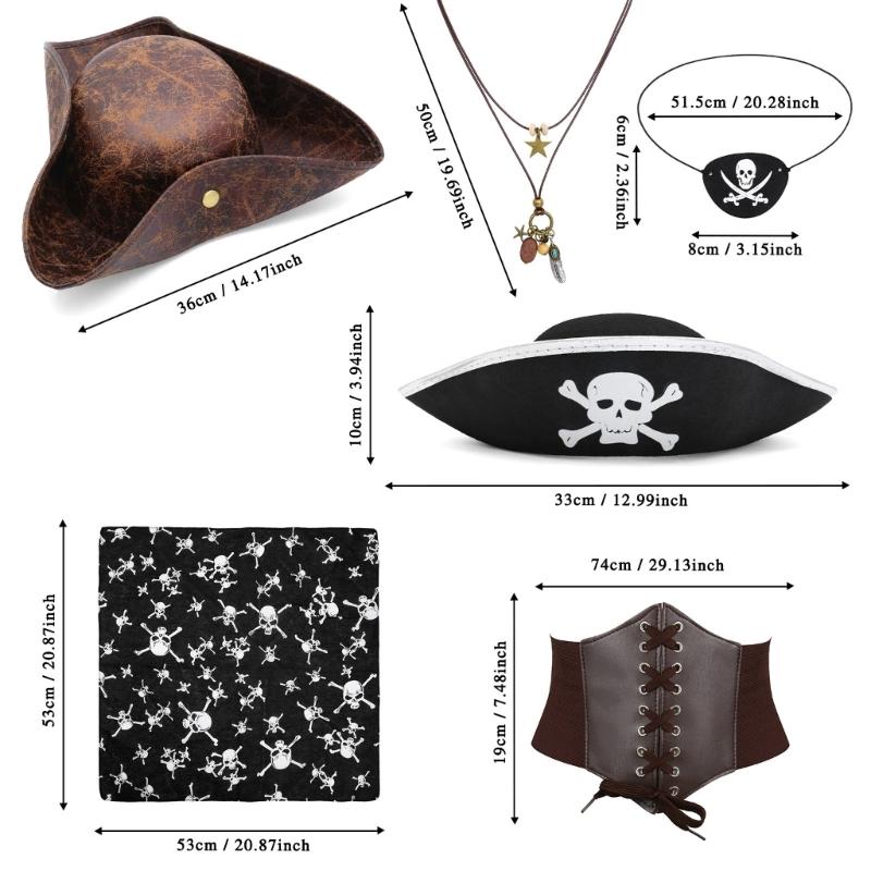 Pirate Costume Accessories Pirate Hat,Medieval Corset Eye Patches Waist Belt Necklace Halloween Pirate Queen Outfits