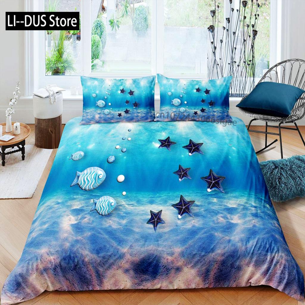 Blue Green Coastal Quilts Full Queen Size Bedding Coverlet Soft Starfish Bed Cover Ocean Quilt Set Seaside Home Decoration 3 Pcs