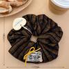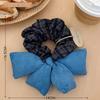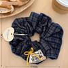 Retro Korean Blue & Brown Plaid Scrunchie, Girly Autumn/Winter Schoolgirl Bow Hair Tie