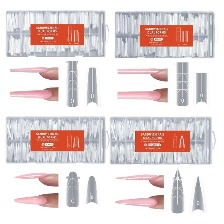 These nails extension forms are designed for repeated use in personals or salon setting, with 256 transparent forms in multiple sizes to suit diverse nails shapes and lengths, enhancing convenience while crafting elegant nails extensions effortlessly.