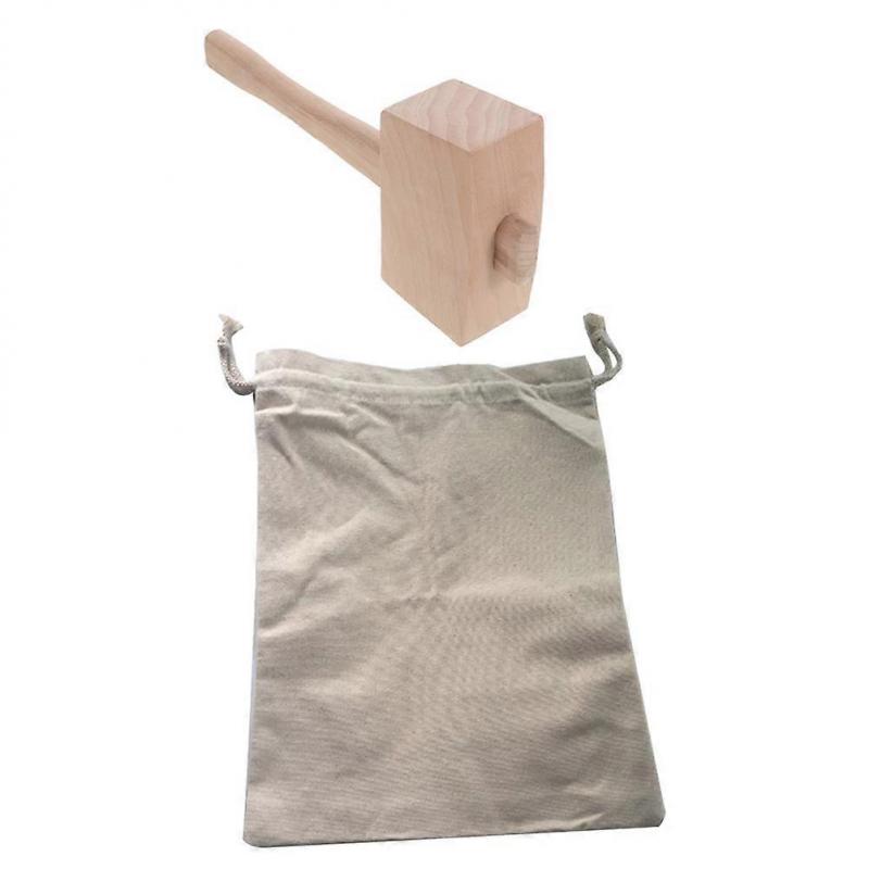 Reusable Canvas Ice Bag with Wooden Mallet for Crushing 1Set
