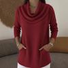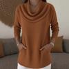 Women's Cowl Neck Loose Fit Knit Top with Pockets Casual Long Sleeve Caramel Blouse