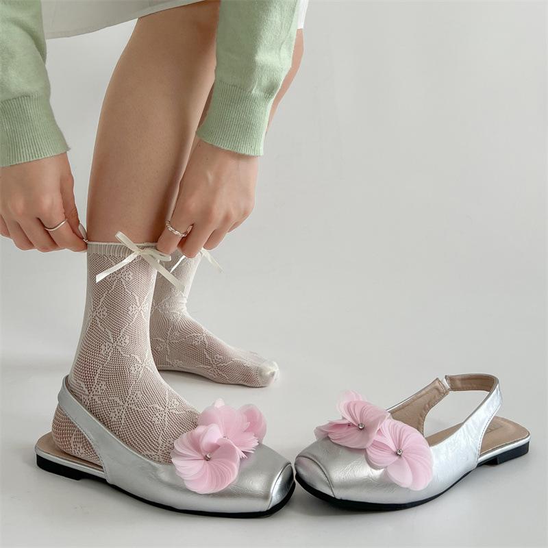 Flower Pink Fairy Wind Flat-bottomed Bag Head Sandals Summer Wear with Skirt Cool Single Shoes
