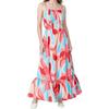 Floral Boho Dress For Women Ruffle Hem Sleeveless Maxi Dress Spaghetti Strap Smocked Beach Long Dresses