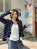 Fashion Long Sleeve V Neck Striped Knitted Cardigan Women Coat Autumn and Winter Loose Women's Cardigans Jacket Tops Elegant Soft Warm Knitwears 24826