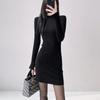 Vestido de punto en jacquard de invierno de trece líneas para celebridades: vestido de suéter de color sólido de largo medio para mujer