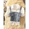 Stylish Vest Elegance Fashion Casual Tie Slim Short Section Outwear Denim Camisole Female Design Single-breasted Stacked Small Undershirt Female
