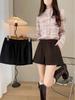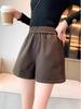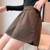 These Women's Black High-Waist A-Line Wide-Leg Shorts are perfect for autumn and winter casual wear. Crafted from quality polyester, they offer a chic and comfortable fit with a flattering high waistline. The A-line design and wide-leg cut provide a stylish silhouette, while convenient pockets add a functional touch. Ideal for pairing with your favorite cozy sweaters or jackets, these shorts seamlessly blend comfort and fashion for cooler seasons.