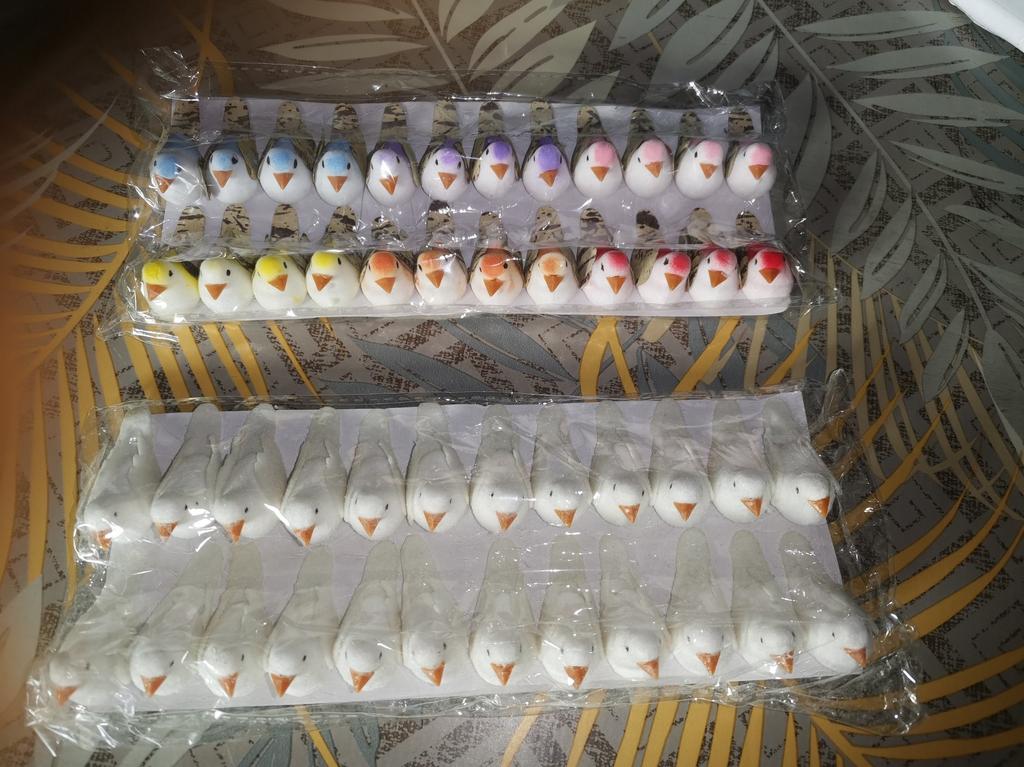 toujours pas reçu mes oiseaux blanc mais bien reçu ceux en couleurs