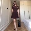 Robe rétro française au-dessus du genou pour femme, manches courtes, coupe trapèze, col rond, couleur unie, mini-robe vintage